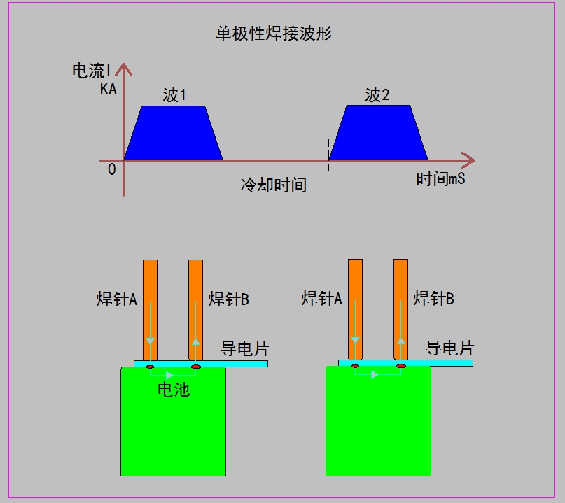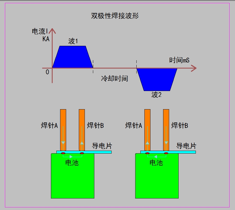 GLC雙極性焊接電源:兩個(gè)輸出極A和B不分正負(fù),第1次焊接電流方向:從A極流向B極;第2次焊接電流方向:從B極流向A極;這時(shí)可獲得兩個(gè)較均勻的焊點(diǎn)。